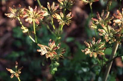 キンポウゲ科. 春早い時期,熊本では2月始めに花をつけることがある.種子は早いものは4月ごろ,果実の先から,風に揺られたときに飛びさす.乾燥すると発芽はしない.約10年以上で生薬,黄連となる.01のオウバクと同じ成分を含み,民間薬で,整腸剤として用いられる.ただ,年数の割には収穫量が少なく高価である.