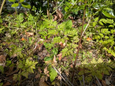 ヤブジラミになるが,葉は3回3出複葉をなし,細裂し,葉はより薄い.花はヤブジラミより早く咲く.小散形花序あたりの花は少なく,2~4個,花柄がヤブジラミより長い.