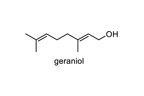 モノテルペン(geraniol, (-)-citronellol),フェニルエタノイド(phenylethyl alcohol)