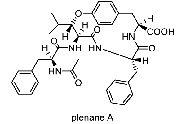根にアルカロイド(plenane A),フェノール誘導体((E)-ferulic acid),ジアリルペンタノイド(kinsenone)