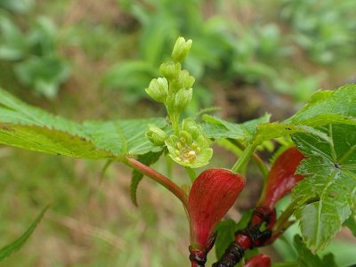 コミネカエデによく似る.コミネカエデより葉の裂片が深く切れ込むとされるが,1花序あたりの花の数(コミネカエデは20~30個,本種は10個内外)を確認しなければ同定は難しい.熊本県では球磨郡の高所にわずかな個体数が知られているのみであり,絶滅が危惧されている.