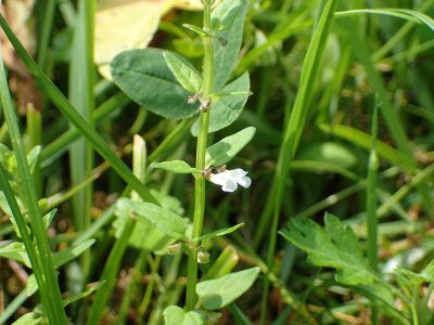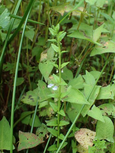 多年草.地下茎を持つ.地上茎は10~60 cm,わずかに分枝する.葉は三角状披針形または三角状卵形,長さ1~2 cm,幅6~10 mm,1~3対の低い鋸歯がある.花は葉腋に1個ずつ付き,白色ときにわずかに帯紅紫色,基部は少し上向きに曲がる.